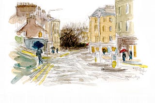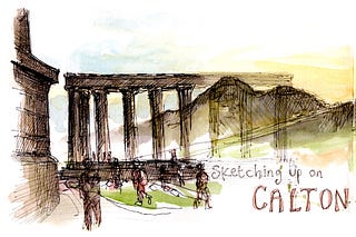 I climbed up Arthurs Seat to sketch a view, not into the city this time but east along the coast towards North Berwick.