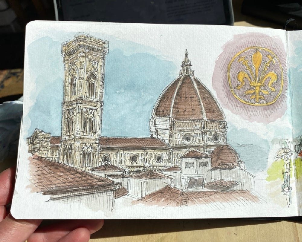 I finished my three montage sketches from our holiday with this watercolour of the Cathedral of Santa Maria del Fiore in Firenze or Florence. It was a magic trip and I look forward to sharing the full sketches in a separate post soon.
