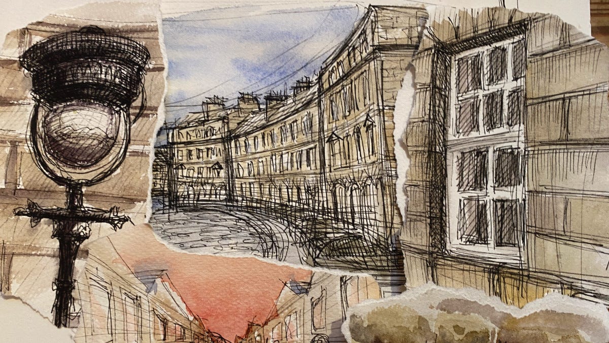 I will guide you on a walking sketch tour of the New Town focusing on architectural details and perspectives.