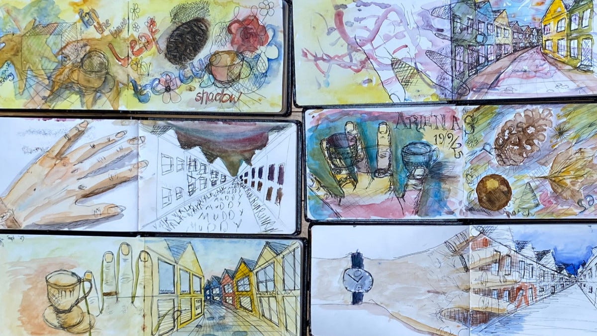 Still-life sketching: choosing what to include and how to link sketches with colour and composition