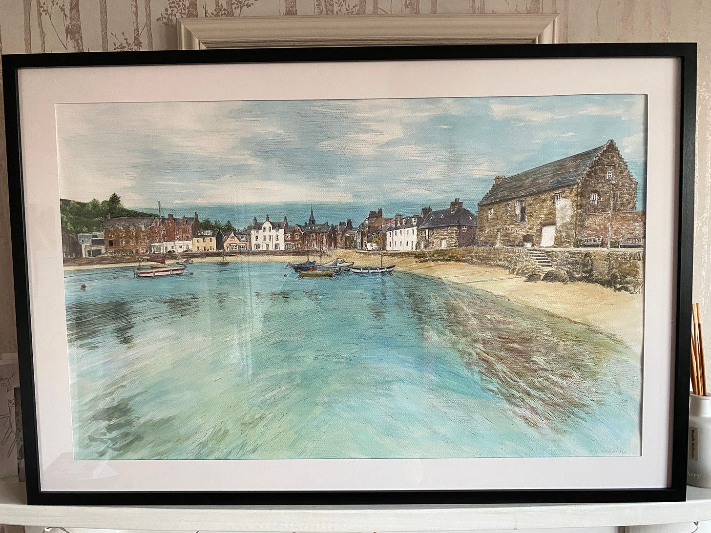 I’m glad that it was for a couple who live in Stonehaven, who asked me to go up and create this painting for their home. Seeing it again gives me happy memories from a couple of gorgeous sunny and inspiring trips to that part of the country. This painting captured that happy time for me by the waters edge and I hope it does something similar for the new owners.