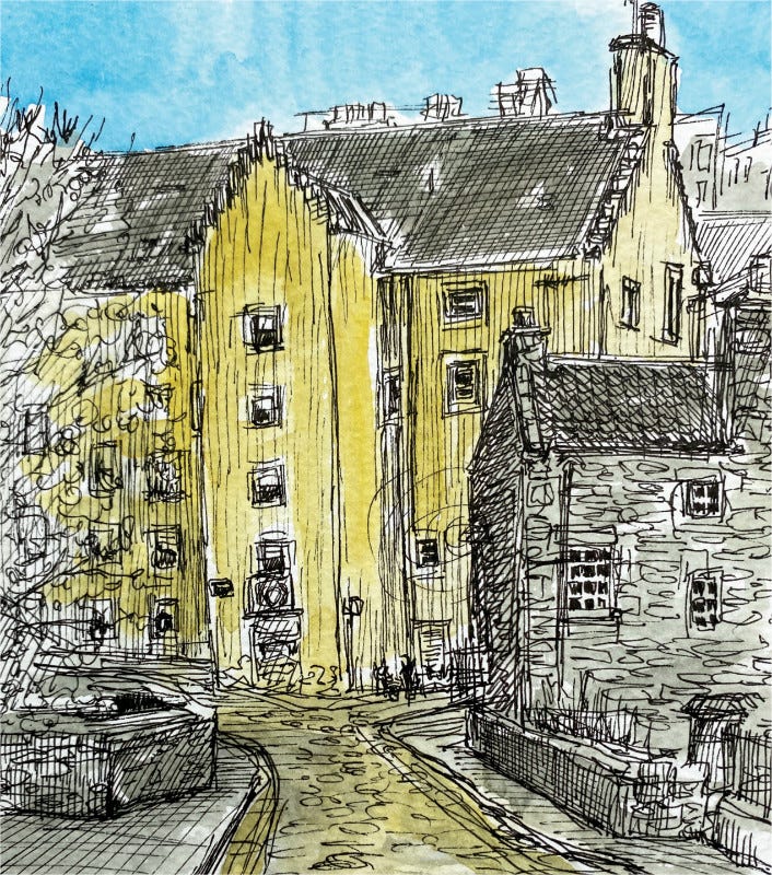 Each Monday morning I post a part of the city and you have to tell me where I have been sketching. After 24 hours I will pick one correct answer to receive a set of my Edinburgh location gift cards featuring my inky scribbles from the city.
