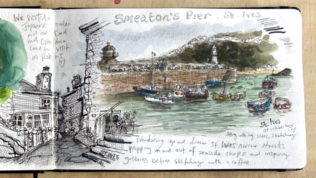Create a habit of journalling with sketches, blending notes and drawings to appreciate the moment and provide a colourful visual diary to look back on.