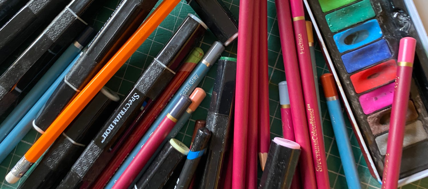 With this in mind we all start a sketch book to take away and continue and from now on I will also bring lots of materials, and encourage you to bring your own too if you wish so that we can share ideas and styles and not have the barrier of waiting until we have our favourite pens or watercolours with us to make some art. Find out more and book a place for my April date via the Arienas Collective link below.